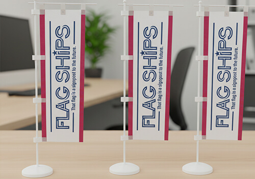 卓上やカウンターに置くだけ設置のミニのぼりです。小さくても商品紹介やキャンペーン告知にぴったりな邪魔にならない存在感です。