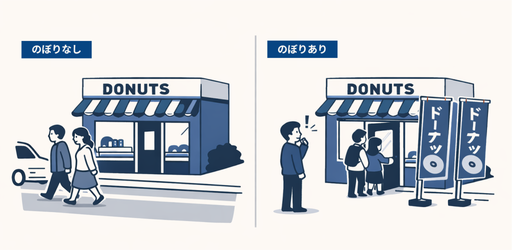 のぼりは単なる旗ではなく、視認性と行動喚起を高める強力な販促ツールです。