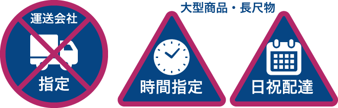 配送会社のご指定は承っておりません。大型商品・長尺物は、時間帯指定や日曜・祝日の配達に対応できない場合があります。