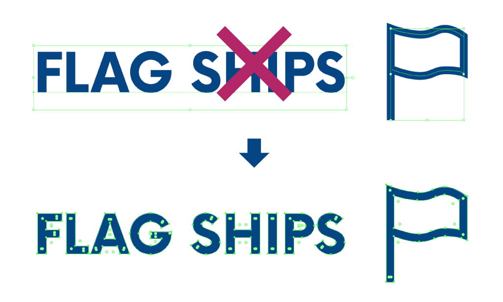- 文字化けを防ぐために、文字はすべてアウトライン化してください。