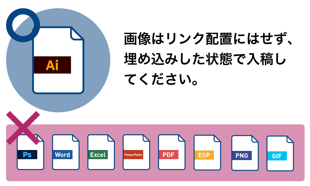 入稿データは「PDF互換ファイルを作成」したAdobe Illustrator(.ai)形式のみ対応です。