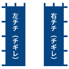 | チチ(チギレ) | のぼりのテープのこと。 左チチ:左側にのぼりのテープ 右チチ:右側にのぼりのテープ ![]() |
